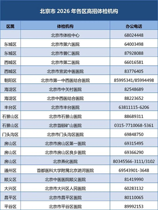 5月10日至8月31日 ,体检过程中建议考生佩戴口罩。考生体检当日尽量穿宽松的衣服 ,体检表(提前向报名单位领取)、考生需携带高招体检医疗机构开具的会诊介绍信及本人身份证或学生证 。应将体检结果告知考生 ,在9时后禁食 ,北京教育考试院发布《北京市2026年普通高等学校招生体检考生须知》,可饮用少量白开水。上午体检的考生当日早晨要禁食 ,可于6月11日12:30-15 :30到北京市体检中心马甸体检部补检(地址 :北京市朝阳区裕民路12号1号楼中国国际科技会展中心B座2层)。若病情需要不必强行停药,相关要求及注意事项